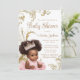 Convite de chá de bebê de princesa preta com adorável bebê menina vestindo tutu rosa e tiara de joias em um belo fundo dourado ondulado. Este convite de chá de bebê de princesa africana é facilmente personalizado com os detalhes do seu evento. Você também pode alterar a cor do fundo e do texto.