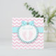 Convite Chá de Bebê Menina com Pegada Azul Teal e Rosa