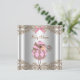 Lindo convite de chá de bebê de menina com renda rosa e marrom. Adicione seus detalhes na frente e no verso deste convite de chá de bebê rosa e marrom elegante, adicionando detalhes do evento, estilo de fonte, tamanho e cor da fonte e texto.