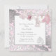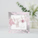 Convite de chá de bebê menina em damasco rosa e cinza com adorable botinhas cor-de-rosa, chupeta, botinhas e coelho em um varal de roupa. Você pode personalizar facilmente este convite de chá de bebê doce e elegante adicionando os detalhes do seu evento, estilo de fonte, tamanho e cor da fonte e texto.