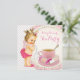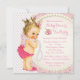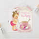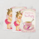 Convite de chá de bebê de menina com adorável bebê menina vestindo calças de babado rosa, coroa e colar de pérolas. Este adorável convite de chá de bebê tema chá com xícara de chá rosa é facilmente personalizado para o seu evento adicionando detalhes do evento, estilo de fonte, tamanho e cor da fonte e texto.