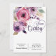 Coleção de Chá de Bebê Baby In Bloom Floral Boho Watercolor, mistura de roxo, violeta, rosa, verde elegante com caligrafia fofa é ideal para chás de bebê menina e menino.