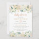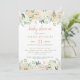 Esses convites de chá de bebê estilosos e neutros em termos de gênero apresentam uma borda floral elegante em aquarela com rosas pintadas, peônias, ranúnculos e folhas em tons neutros adoráveis de branco, creme, rosa beijado, dourado e verde. O verso do cartão é verde suave com um padrão de pontos escovados abstratos. Personalize o texto para o evento especial da futura mamãe.