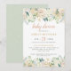 Convite Chá de Bebê Menina Floral Verde Dourado Rosa