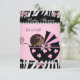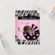 Convite de Chá de Bebê Menina Fofo Zebra Rosa Preto Branco, bebê recém-nascido, menina, laço de fita de renda com pérolas