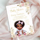 Convite Chá de Bebê Menina Ouro Rosa para Bebê Afro-Americ