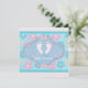 Convite de chá de bebê menina com adoráveis pés de bebê rosa e flores azuis e laços