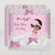 Afro-americano, Vintage Fofo Vintage Chá de Bebê Menina Rosa Bebê na Xícara com cupcake. Festa do Chá Rosa e Branco, Convite de Bolinhas Rosa e Fita de Laço, adorável novo bebê, linda bebê