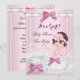 Antigo Fofo Chá de Bebê Menina Rosa Bebê na Xícara com cupcake. Festa do Chá Rosa e Branco, Rosa Renda Branca e Convite de Laço, adorável novo bebê, linda menina