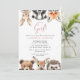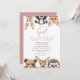 Este convite de chá de bebê de animais florestais em aquarela 'é uma menina!' pode ser personalizado com suas informações em tipografia moderna rosa empoeirado e preto. Criado por Thisisnotme©