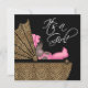Adorável carrinho de bebê leão-marinho com linda menina afro-americana vestindo um lindo conjunto rosa e uma faixa para o cabelo. Este convite de chá de bebê leão-marinho preto, branco e rosa é facilmente personalizado para o seu evento, adicionando detalhes do evento, estilo de fonte, tamanho e cor da fonte e texto.