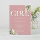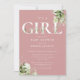 Convite Chá de Bebê Menina Rosa Po dusty Folhagem Carta
