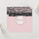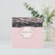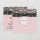 Convite de chá de bebê diva pequeno preto e rosa com listras de zebra rosa elegante.