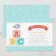 Convite Chá de Bebê Menino Azul Aqua Blocos ABC Pássaro