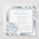 Convite de chá de bebê menino de sapatos prateados e azuis bebê. Convite de chá de bebê azul e prata de sapatos de bebê azuis fofos.