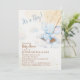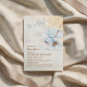 Este design doce foi inspirado em ilustrações sonhadoras de berçário e livros de histórias de aquarela macia. Um pequeno elefante azul balança suavemente entre nuvens fofas e estrelas douradas, criando uma cena celestial mágica. Perfeito para celebrar o bebê que está a caminho com um convite de chá de bebê charmoso e caprichoso.