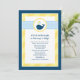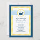 Este convite de chá de bebê náutico apresenta uma baleia da marinha simpática com respingos de água em forma de coração, contra um design alegre de bolinhas e listras azuis e amarelas. A combinação de cores brilhantes e divertidas é perfeita para a celebração de um bebê menino. Um padrão de baleia coordenado adorna o verso do cartão. Toda a redação é totalmente personalizável para o seu evento.