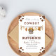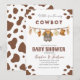 Convite! Perfeito para um chá de bebê divertido e festivo com tema western, este convite apresenta charmosos desenhos inspirados em rodeio e cowboy que estabelecem o tom para uma celebração memorável. Ideal para amigos e familiares se juntarem para dar as boas-vindas ao seu bebê menino, é divertido, colorido e cheio de charme western.