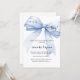 Um fundo branco elegante, decorado com um grande laço azul. Personalize e adicione um nome e detalhes da festa.