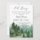 Convite de chá de bebê menino com urso bebê fofo em um fundo de floresta aquarela. Basta adicionar os detalhes do seu evento.
