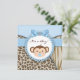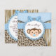 Convites de chá de bebê menino macaco azul com estampa de leopardo marrom e tigre. Este convite de chá de bebê do macaco azul e marrom é facilmente personalizado para o seu evento, adicionando detalhes do evento, estilo de fonte, tamanho e cor da fonte e texto.