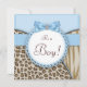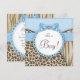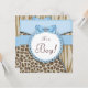 Convite de chá de bebê de leopardo e tigre marrom claro e azul bebê adorável. Este convite de chá de bebê safari marrom e azul elegante é facilmente personalizado para o seu evento, adicionando detalhes do evento, estilo de fonte, tamanho e cor da fonte e texto.