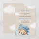 Convite de chá de bebê menino urso nuvens aquarela moderno minimalista fofo.