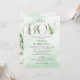 Convite de chá de bebê menino verde botânico elegante com um lindo fundo verde aguado aquarela, bela folhagem verde rústica em torno da palavra "MENINO", respingos de glitter dourado e um modelo de celebração de chá de bebê moderno e fácil de personalizar.