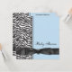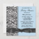 Convite de chá de bebê menino zebra preto e azul elegante com gravata borboleta preta. Adicione seus detalhes na frente e no verso deste convite de chá de bebê zebra azul simplesmente adicionando os detalhes do seu evento, estilo de fonte, tamanho e cor da fonte e texto.