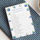 Celebre a futura mamãe com este Jogo Quem Sabe Mais da Mamãe Personalizado para Chá de Bebê Mirtilo Azul, uma atividade divertida perfeita para temas de chá de bebê de verão e qualquer tema de chá de bebê de menino. Concebido em um encantador tema de chá de bebê de mirtilo azul, combina perfeitamente com ideias de chá de bebê temático de mirtilo e um tema de chá de bebê doce de frutas. Este jogo complementa ideias de chá de bebê doce de frutas, um tema de chá de bebê doce de frutas e outras ideias de chá de bebê de frutas, tornando-o indispensável para ideias de chá de bebê temático de frutas que os convidados vão adorar.