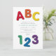 Convite Chá de bebê neutro ABC 123 colorido fofo
