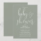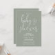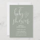 Este convite de chá de bebê neutro em elegante verde salvia com script pode ser personalizado com todas as informações da sua celebração especial. Criado por Thisisnotme©