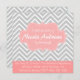 Cinzas clássicas e Elegantes e plano de fundo de chevron branco. Moldura cor-de-rosa com efeitos suaves para indicar o nome do bebê. Esse convite atraente com cores pastéis é ideal para quem planeja um chá de fraldas ou precisa de um anúncio para a chegada de um bebê recém-nascido. Design é adequado para uma menina. O cartão de convite pode ser facilmente personalizado para os detalhes da sua parte. Projetado por Rusty Doodle.