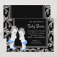 Convite Chá de Bebê para Gêmeos Preto, Azul e Prata