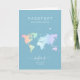 Convite Moderno para Chás de bebê de Passaporte com Mapa do Mundo em Azul empoierado, como passaporte.