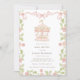 Celebre a chegada do seu pequeno com este encantador convite de chá de bebê, apresentando um carrossel cor-de-rosa caprichoso e delicados detalhes florais. O belo design de aquarela evoca uma sensação de magia e alegria, perfeito para anunciar seu evento especial. Este convite inclui um código QR conveniente no verso para um rastreamento fácil de confirmação de presença, garantindo um processo de planejamento contínuo para seus convidados. A paleta de cores pastéis encantadoras e a imagem lúdica do carrossel criam uma primeira impressão memorável para a celebração do chá de bebê.