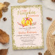 Convite Chá de Bebê Pequena Abóbora com Brilho Dourado Ros