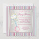 Uma garrafa de bebê rosa e azul-lacrimejante e convites de chá para bebês pacificadores. Este convite para chás de fraldas cor-de-rosa e azul-lacre é facilmente personalizado para o seu evento simplesmente adicionando detalhes do seu evento, estilo da fonte, tamanho da fonte e cor e texto. Observe que todos os adesivos, cartões e designs de convite que você encontrará no Zazzle são gráficos impressos sem joias reais, arcos, levantados, gravados, ou peças ou peças adicionadas.