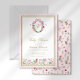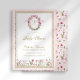 Convide os entes queridos para uma bela celebração com tema de jardim com este convite de chá de bebê "Monograma de Crista de Flores Silvestres". Com uma delicada disposição floral em aquarela de rosas cor-de-rosa e flores de jardim, um laço azul elegante e uma suave borda rendada, este cartão sofisticado define um tom gracioso para o seu dia especial. Personalize facilmente os detalhes do evento para criar uma lembrança atemporal para a sua clássica celebração de berçário ou chá de bebê.