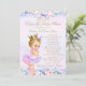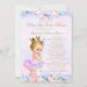 Convite de chá de bebê drive by da princesa com linda princesa loira usando máscara e um lindo tutu rosa e roxo e coroa em um lindo fundo floral rosa e roxo. Este chá de bebê drive by da princesa é facilmente personalizado para o seu evento simplesmente mudando o texto. Você pode alterar a cor do texto, escolher o estilo da fonte, a redação, etc.
