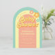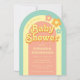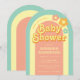 Convite Chá de Bebê Retro Arco Groovy Arco-íris Flores 70s