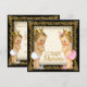 Convite de revelação do sexo do bebê com tema de príncipe ou princesa com belo fundo dourado e adoráveis príncipe e princesa usando fraldas e coroas em um belo e sofisticado fundo dourado. Este convite de revelação do sexo do bebê com tema de príncipe e princesa dourado ornamentado é facilmente personalizado para o seu evento adicionando os detalhes do evento, estilo de fonte, tamanho e cor da fonte e texto. Você também pode alterar a cor do fundo deste adorável convite de revelação do sexo do bebê para combinar perfeitamente com o seu tema.