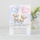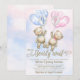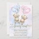 Convite de chá de bebê revelação do gênero do urso com ursinhos fofos e balões em um lindo fundo de céu rosa e azul. Este convite de chá de bebê revelação do gênero do urso é facilmente personalizado com os detalhes do seu evento.