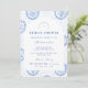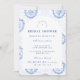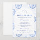 Este elegante design de chá de panela de noiva apresenta um refinado padrão floral vintage em tons clássicos de azul e marfim, inspirado em tecidos botânicos tradicionais e impressões de jardim de família. O fundo decorativo combina delicadas flores, listras e padrões ornamentais que enquadram um layout arqueado gracioso para os detalhes do evento. A paleta azul atemporal evoca o charme da porcelana antiga e das ilustrações de jardins europeus, criando uma estética sofisticada e romântica. Perfeito para chás de panela de noiva em jardins, celebrações de casamento clássicas ou encontros elegantes de noiva com um estilo vintage atemporal.