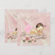 Convite de chá de bebê rosa bege com adorável bebê de cabelo escuro em uma linda almofada floral sobre um elegante fundo de renda rosa bege e marfim. Estes convites de chá de bebê rosa bege são facilmente personalizados com o texto de sua escolha na frente e no verso no estilo de letra e cor que preferir.