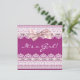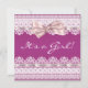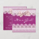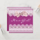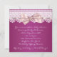 Convite de chá de bebê menina com laço rosa e fita de renda branca brilhante.