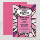 Um convite de chá de bebê divertido, legal e moderno inspirado em histórias em quadrinhos cor-de-rosa para menina, ou chá de revelação ou chá de casal que dá o impacto, o zap, o pow em qualquer evento de celebração para a futura super-heroína mamãe ou casal. O verso apresenta um padrão de bolinhas cor-de-rosa de história em quadrinhos que você pode substituir pela sua própria imagem ou foto. Criado por Thisisnotme©