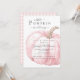 Experimente o charme de nosso elegante convite para chá de menina no outono, apresentando uma deliciosa abóbora de aquarela cor rosa pastel e padrão de gingham nas costas, encapsulando perfeitamente o tema "A Little Pumpkin está no Caminho." Celebre a chegada iminente do seu pequeno estilo com este convite sofisticado, ideal para acolher convidados para a sua comemoração do outono.