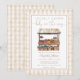 Este convite de chá de bebé encantador apresenta uma barraca de mercado de produtos rurais e um fundo gingham. Concebido por Thisisnotme