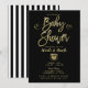 Convite Chá de Bebê Rustico Preto Listras Brancas e Dourad